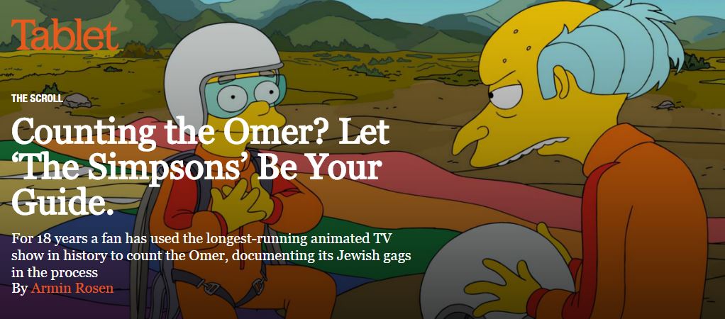 [originally published by Tablet Magazine, available at www.tabletmag.com/scroll/232937/counting-the-omer-let-the-simpsons-be-your-guide]
