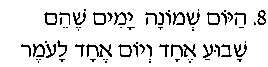 Hayom shmonah yamim, sh'hem shavua echad v'yom echad la'omer.