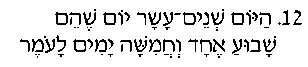 Hayom sh'nem-asar yom, sh'hem shavua echad v'chamishah yamim la'omer.