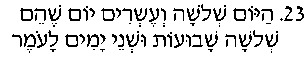 Hayom sh'loshah v'esrim yom, sh'hem shloshah shavuot u-shnei yamim la'omer.